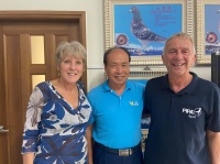 | 6月12日屏東公棚開幕典禮,1鴿文創代表團隊引領葡萄牙信鴿協會主席David Barros Madeira與FCI秘書長Philip geert、義大利鴿協代表cossa、德國信鴿協會主席Richard GroB前來參加開幕儀式,並安排拜訪名家,促進歐洲與台灣的交流,第一站來到大豪専業競翔……。 |